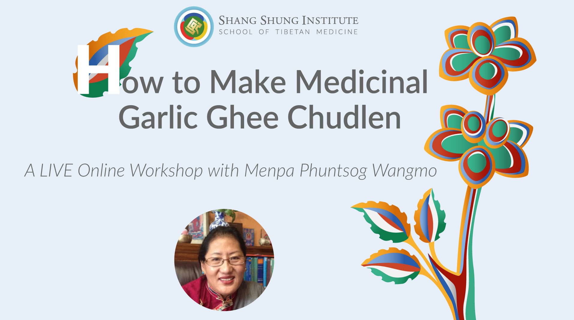 In these stressful times of anxiety and new challenges, discover this simple and effective formula to benefit our lives! In this LIVE online workshop, Menpa Phuntsog Wangmo will thoroughly present the theory and indications of Medicinal Garlic Ghee Ghee Chudlen. She will teach you how to make basic traditional Ghee and will demonstrate the how to prepare and use the Medicinal Garlic Ghee Ghee Chudlen formula. She will also discuss modifications with various other herbs, to benefit individual conditions. Join us and share in the knowledge of the ancient medicinal practice of Chudlen.